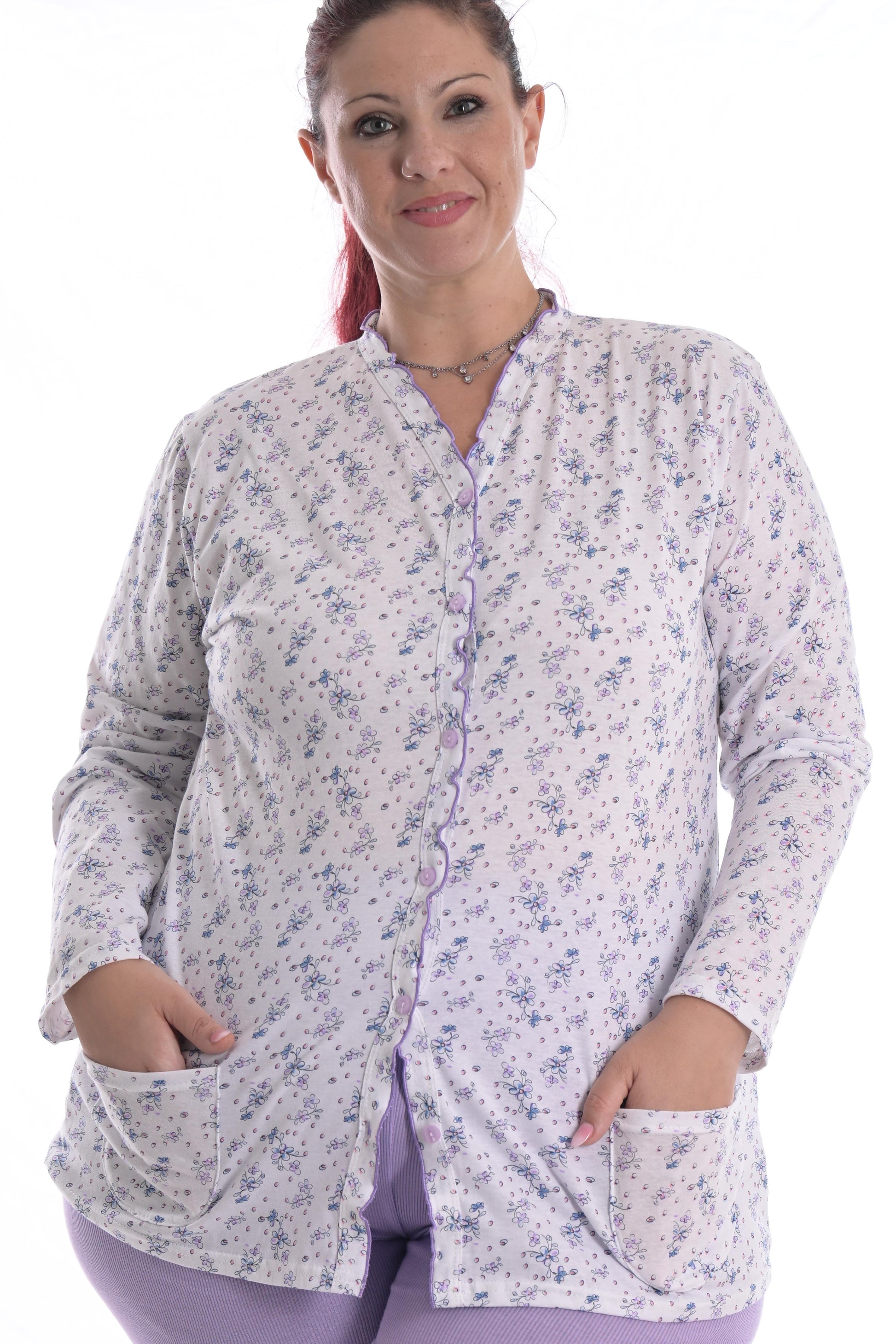 Maglia di pigiama a trapezio che si allarga leggermente su fianchi e bacino per una migliore vestibilità, ideale per : tutti i giorni, allattamento, post-operatorio,