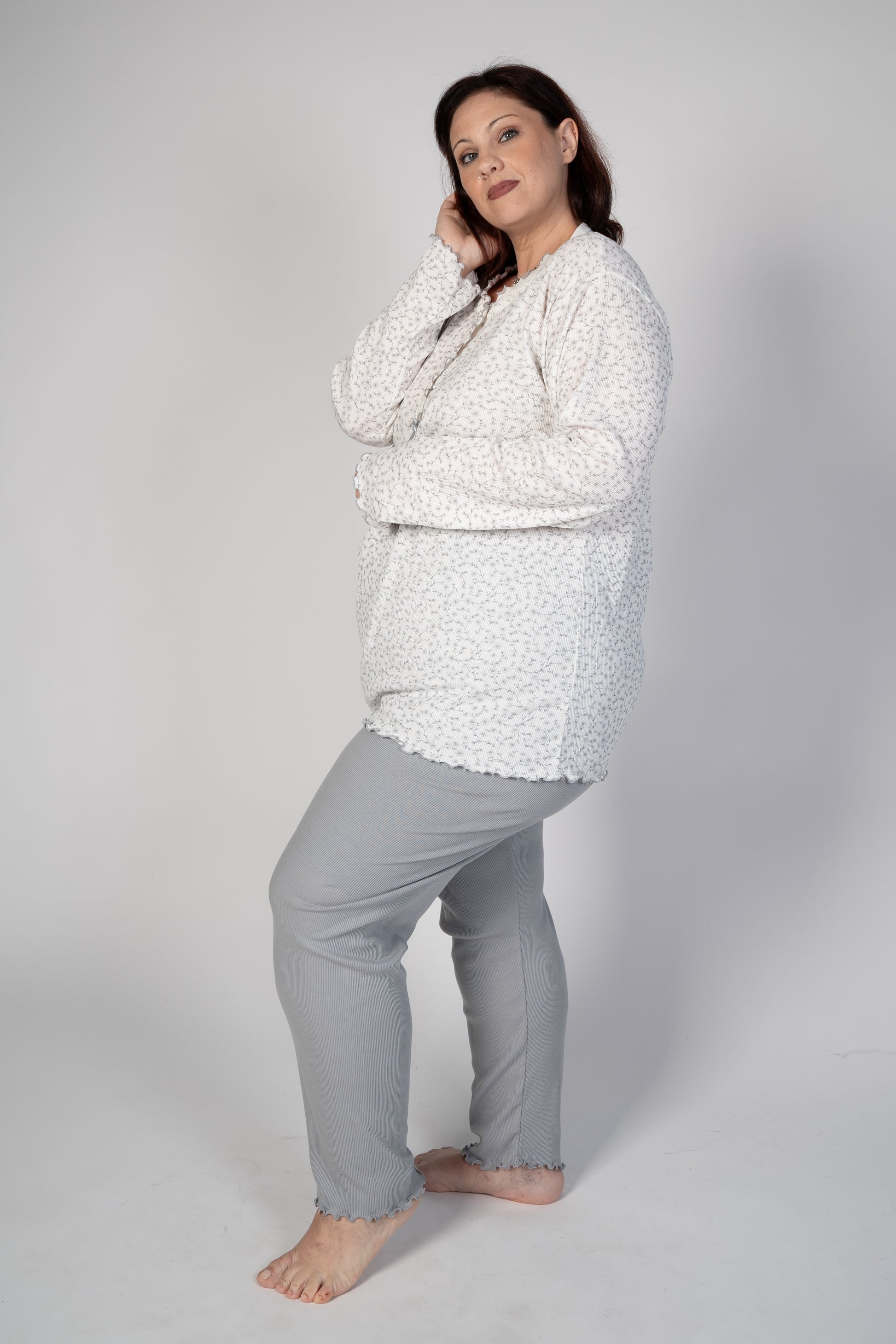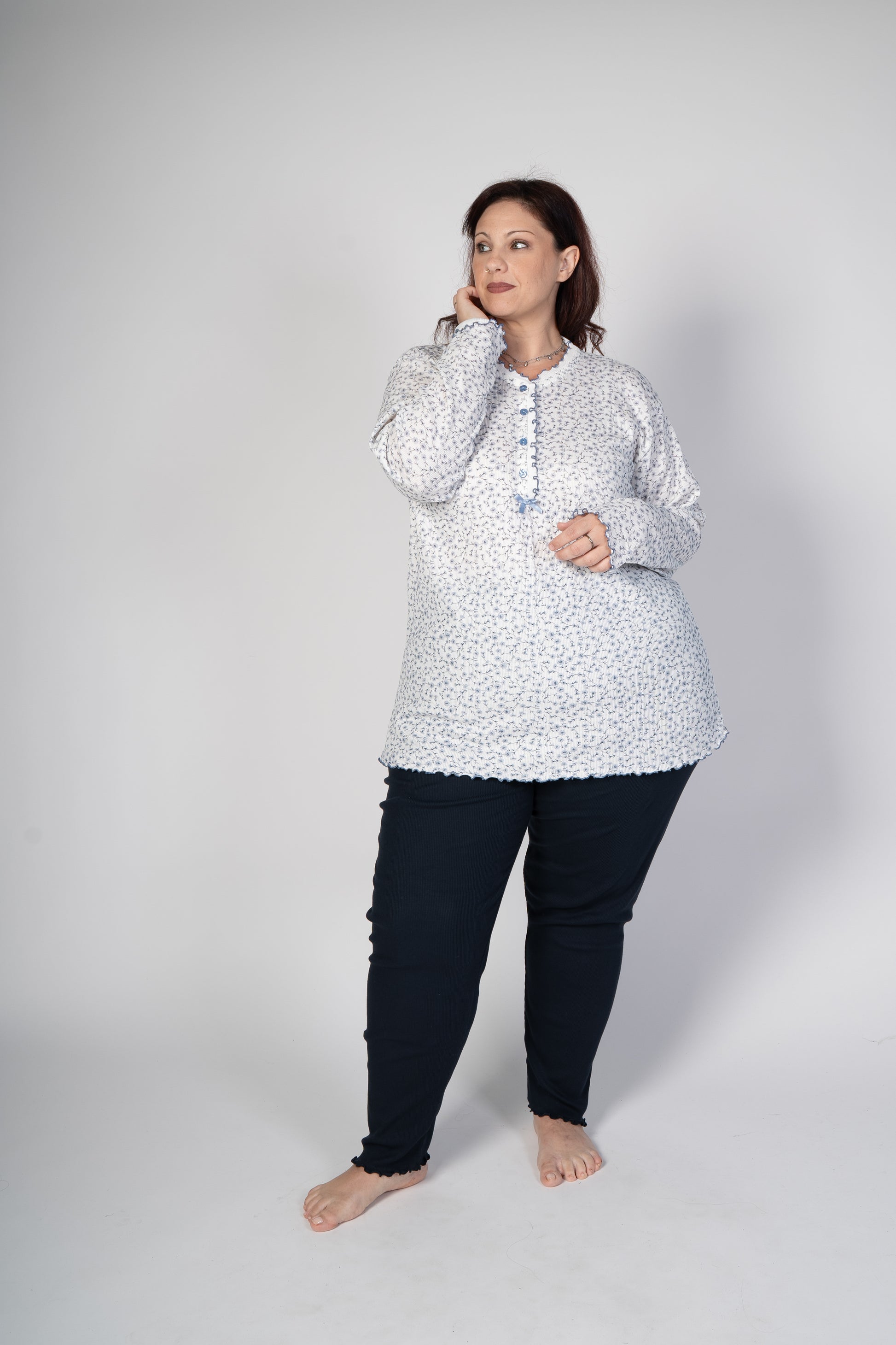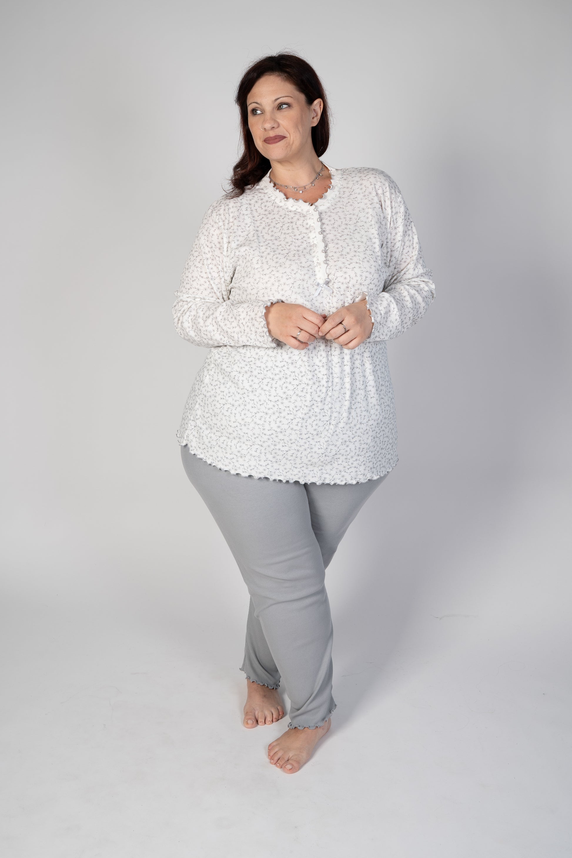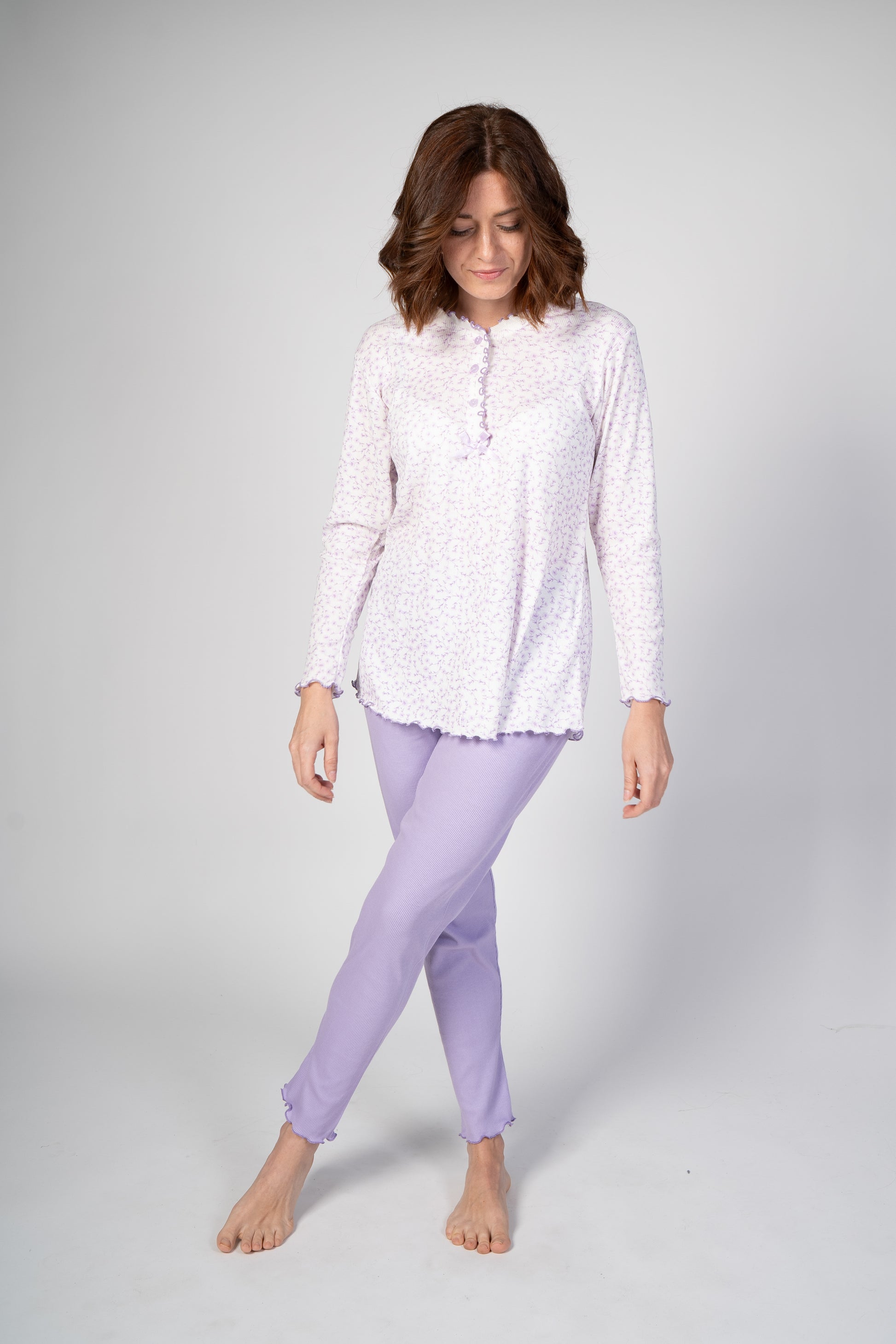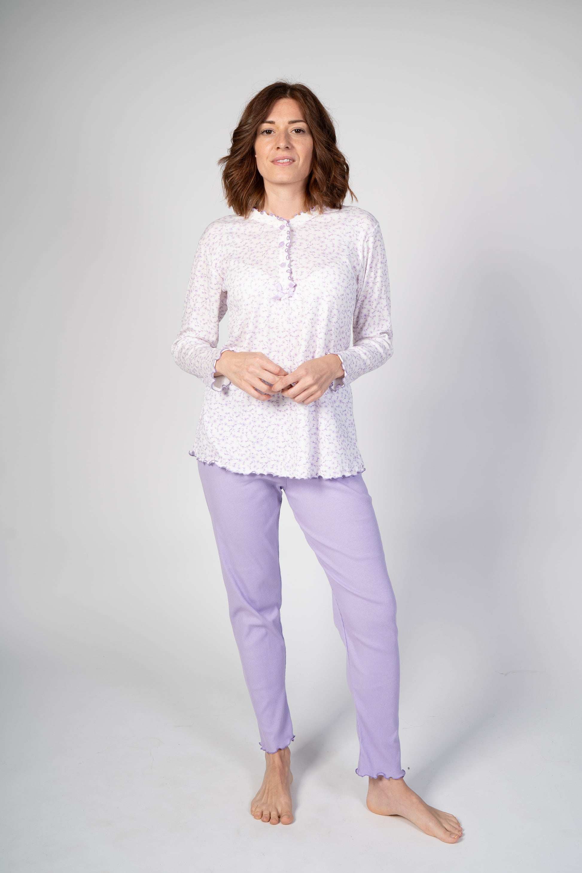 Pigiama con maglia e pantalone lunghi con orli a frullino